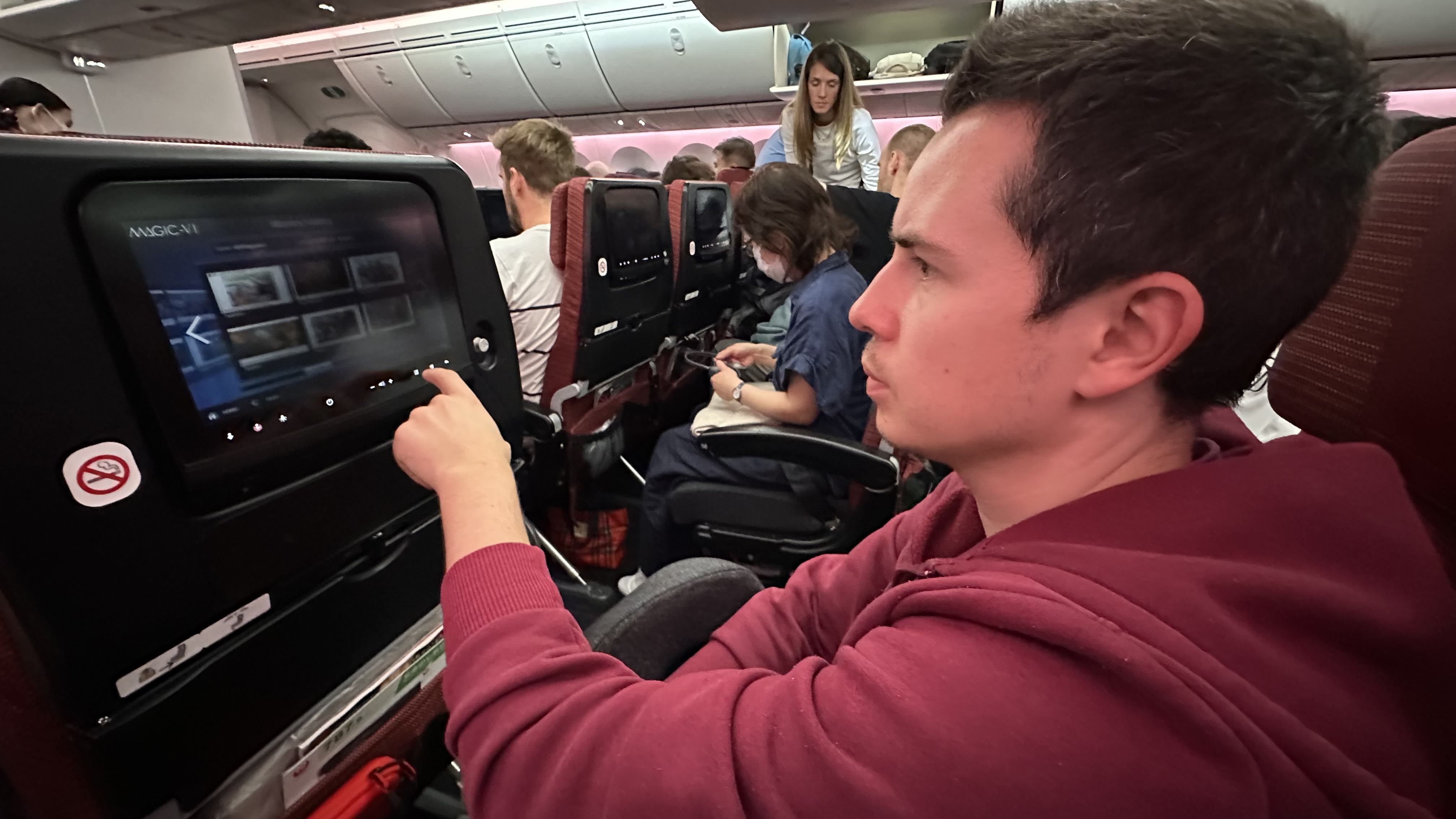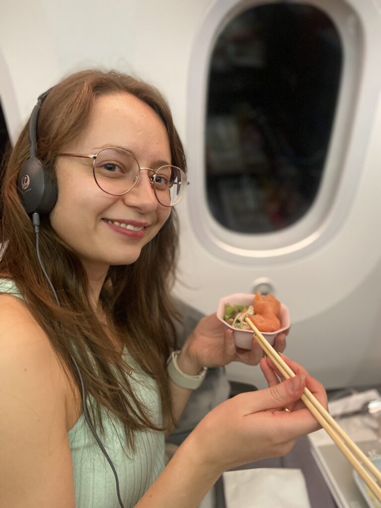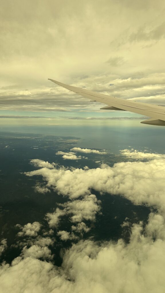Unser Flieger scheint wohl Rückenwind gehabt zu haben und so wurden aus anfänglich angesetzten 13 Stunden Flug gerade einmal entspannte 12 Stunden. Zugegeben, die Zeit verging relativ schnell (fast schon wie im Flug 🥁). Die Hälfte der Zeit haben wir uns intensiv Bemüht, auf den Stühlen der Holzklasse ein wenig Schlaf zu finden .. naja, wenigstens hat die andere Hälfte mit leckere Essen und gutem Entertainment das Ganze wieder aufgewertet.