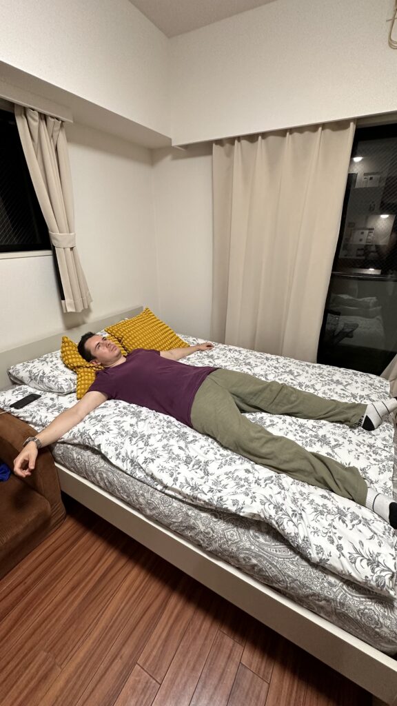 Vom einen Transportmittel ins Andere und wir konnten direkt die gelobte Pünktlichkeit der japanischen Zügen erfahren. Und hier gab es wirklich mal etwas Platz im Zug! Noch die letzten Sonnenstrahlen wahrnehmen und schon sind wir in Shinjuku angekommen.Eine kurze Reizüberflutung später und wir sind endlich im Apartment angekommen. Gemütlich hier!