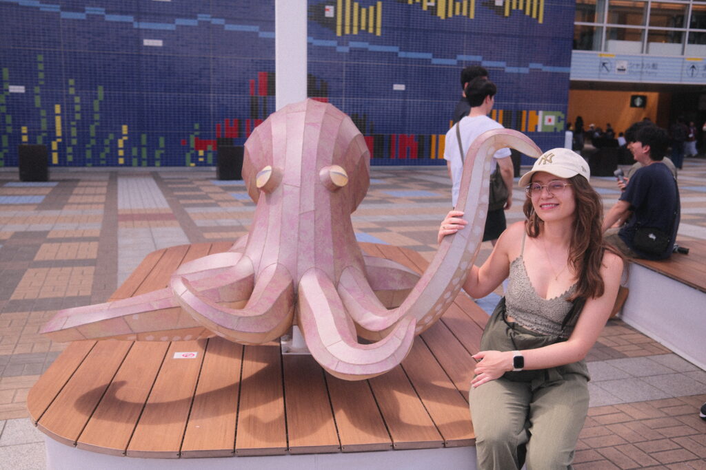 Dort angekommen, schlenderten wir erstmal über die Promenade und den großen Vorplatz des Osaka Aquariums – dieses besuchten wir übrigens nicht, da Lucas nicht unbedingt Fische sehen wollte und der Eintrittspreis auch nicht so günstig war 😀