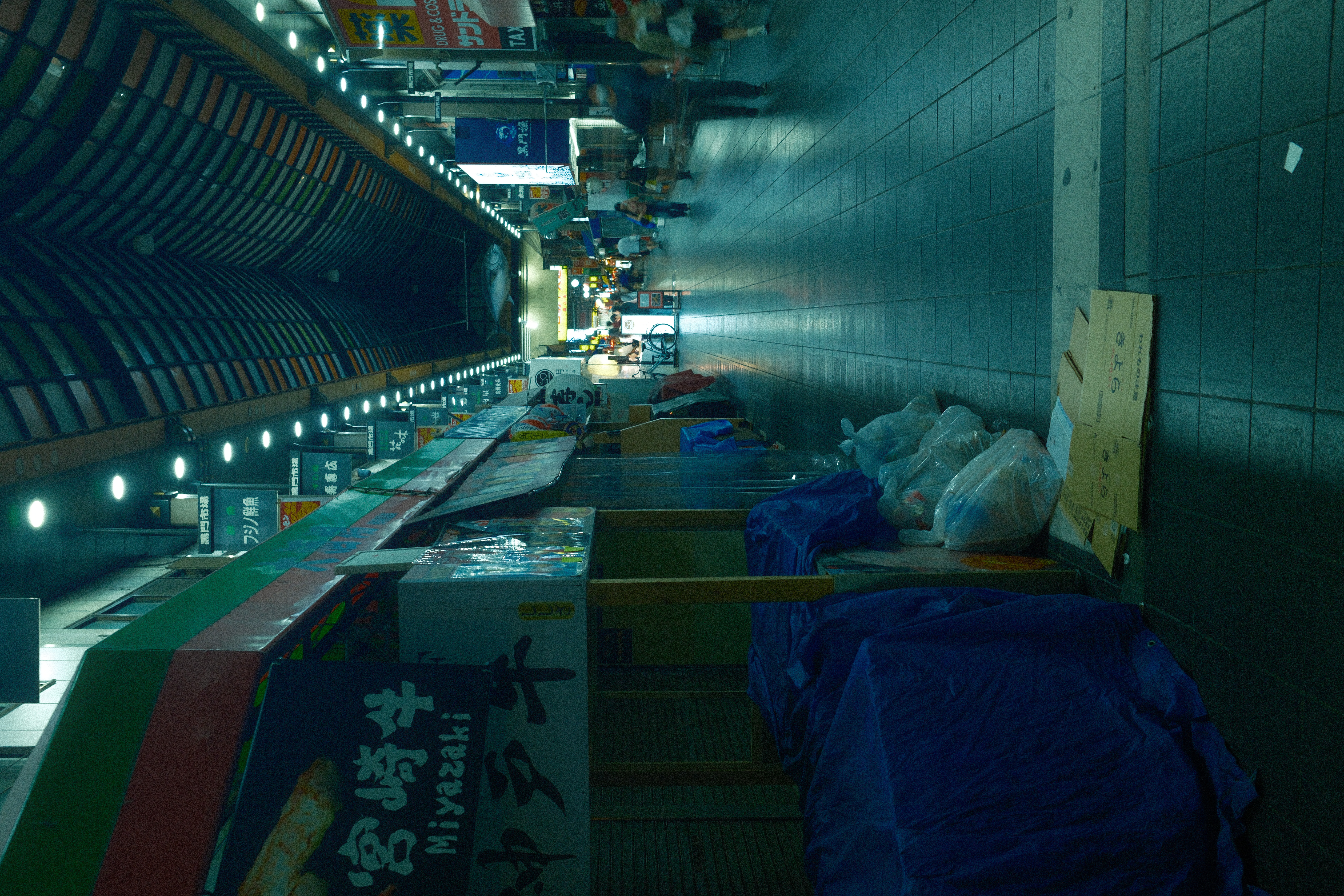 Raus aus dem Untergrund und rauf ans Tageslicht, wobei das zu diesem Zeitpunkt nur noch künstlich erzeugt wurde, dafür aber massenhaft. So brachten wir unsere Einkaufstüten schnell in unsere Wohnungs im 13ten Stock und hatten wieder Spaß mit dem Luftdruck hier oben (die Tür ist echt widerspenstig). Danach hat Lucas ein Sushi-Restaurant ausgesucht, was angeblich auch andere Sachen anbietet. Vor Ort stellte sich leider heraus, dass nur noch Sushi auf der Karte stand und wir uns somit auf die Suche nach einem neuen Restaurant machen mussten (denn Lucas mag wirklich keinen Fisch). Dafür haben wir aber wieder einen leckeren Inder gefunden (ich meine ein Restaurant!). Auf dem Rückweg statteten wir der Fischmarkt-Straße einen abendlichen Besuch ab. Zum Glück (für Lucas) hatten alle Geschäfte schon geschlossen – Fisch wird eben nur früh am Tag gehandelt.