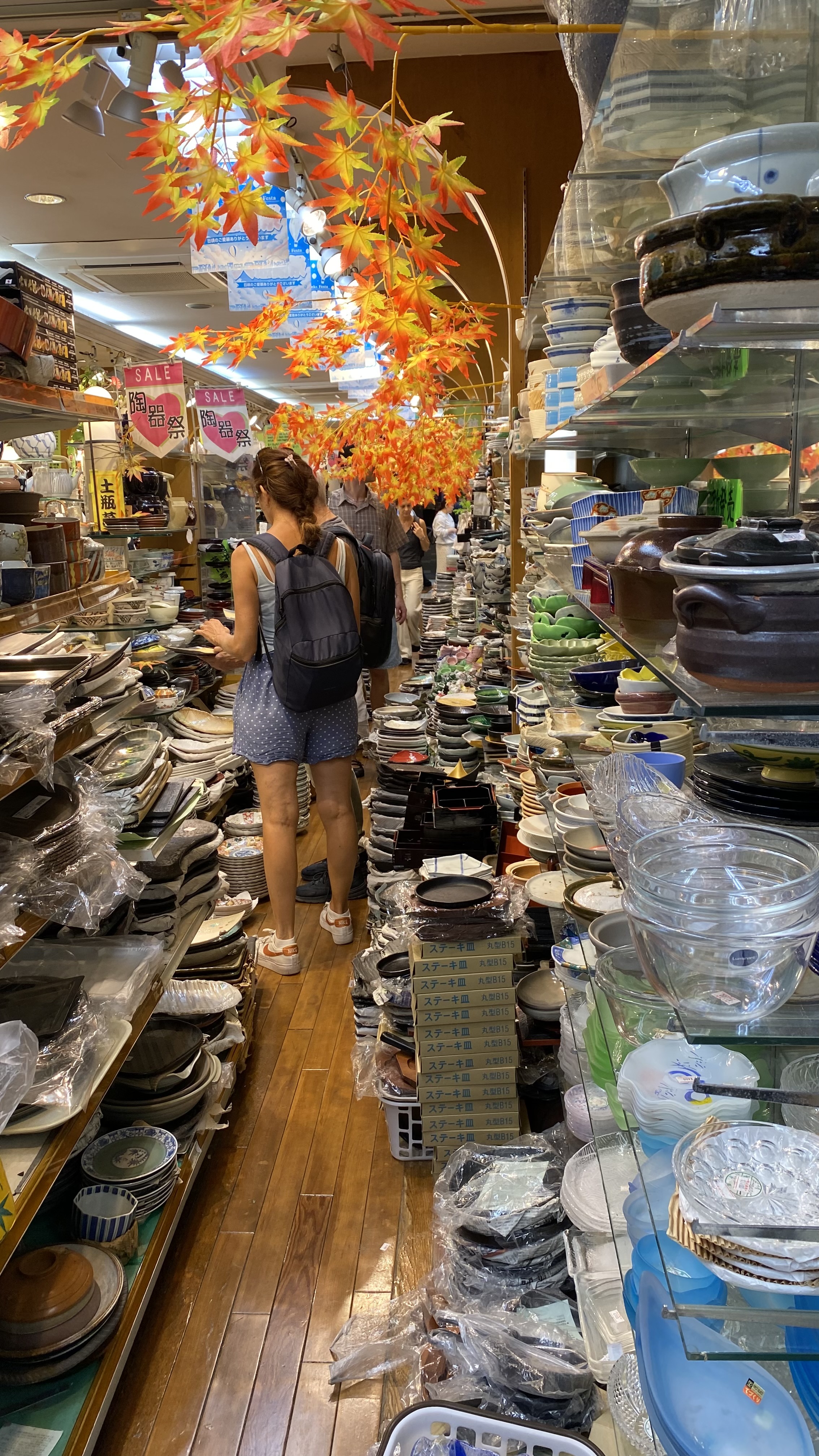 Wieder auf dem Boden angekommen ging es mit ein wenig mehr Ruhe durch die Einkaufsläden am Hafen und später durch die deutlich volleren Läden Rund um Namba. Insbesondere die „Kitchenware-Street“ hatte uns angelacht und so stolperten wir mehr, als das wir gingen, wie zwei Elefanten im sprichwörtlichen Porzellanladen. Versteht uns nicht falsch, wir waren anmutig wie Katzen (und haben nichts umgeworfen), aber diese engen und vollgestellten Gänge… fündig sind wir alle Mal geworden.