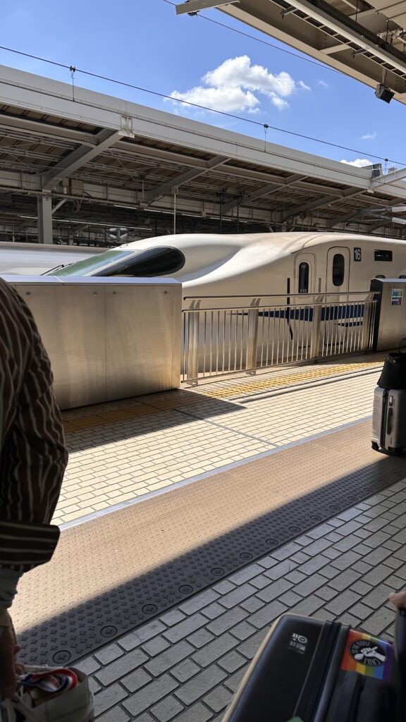 Gerade so die Koffer wieder zubekommen hieß es für uns auf zurück zum Anfang. Eine letzte Shinkansen-Fahrt, ein letztes mal das Gebimmel der Nozemi Tokaido Züge hören. Aber zum Glück hatten wir zwei Plätze auf der wunderbaren Fuji-Seite bekommen, welche eine Chance auf einen Blick kurz vor der Ankunft in Tokio auf den heiligen Berg bieten sollten. Aber wie schon auf dem Hinweg versteckte sich das schüchterne Wahrzeichen Japans hinter Wolken – Schade!