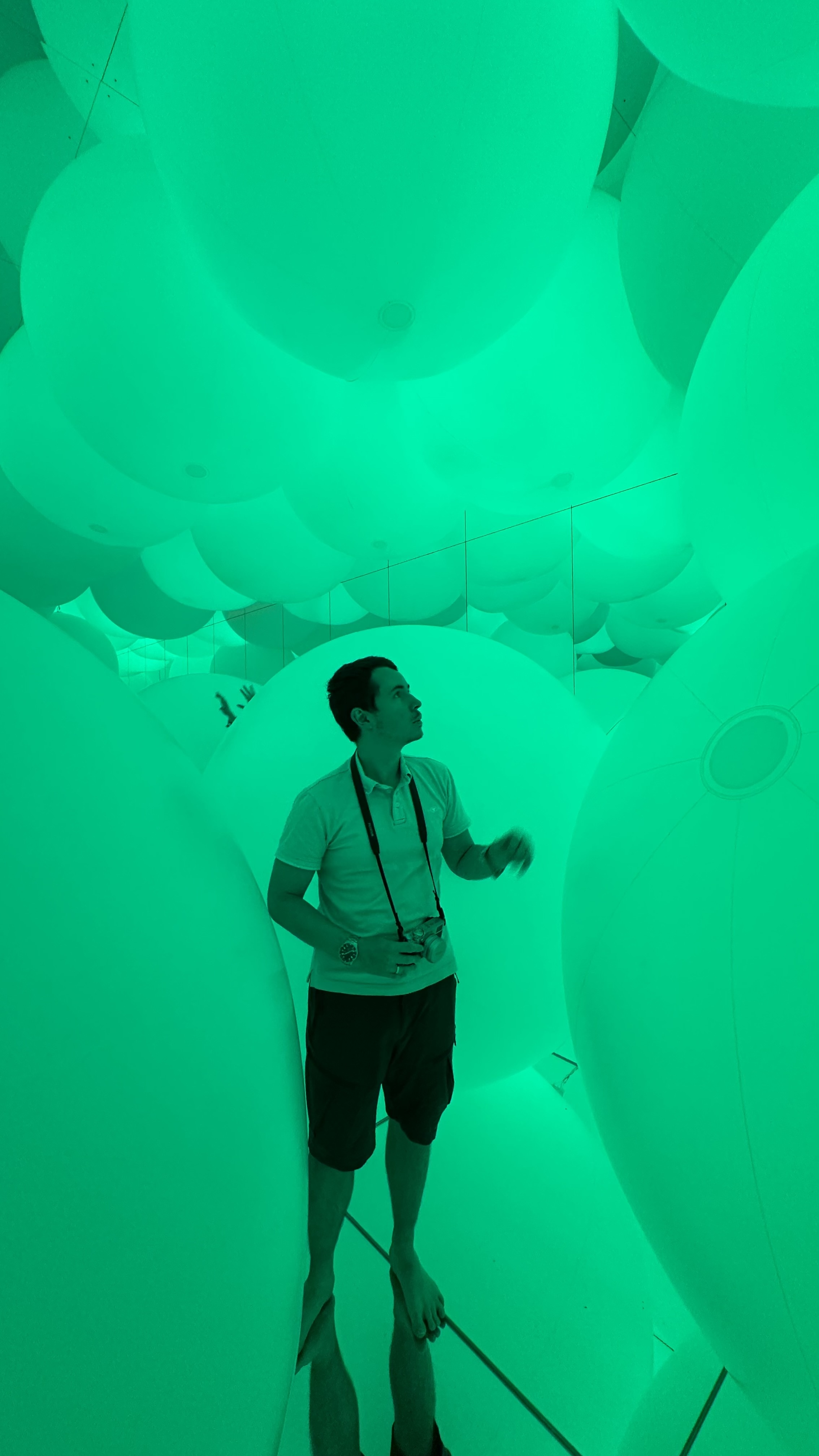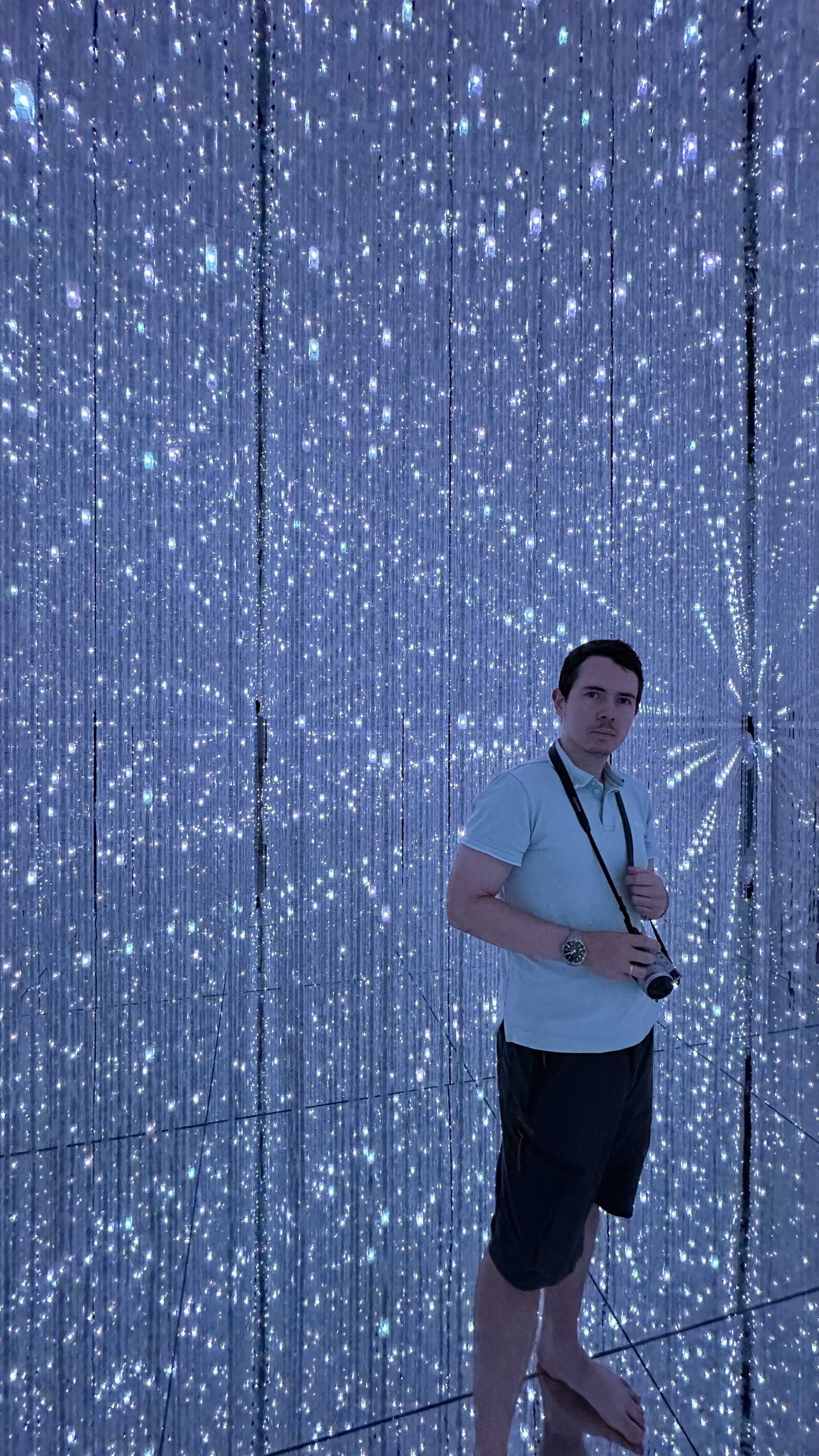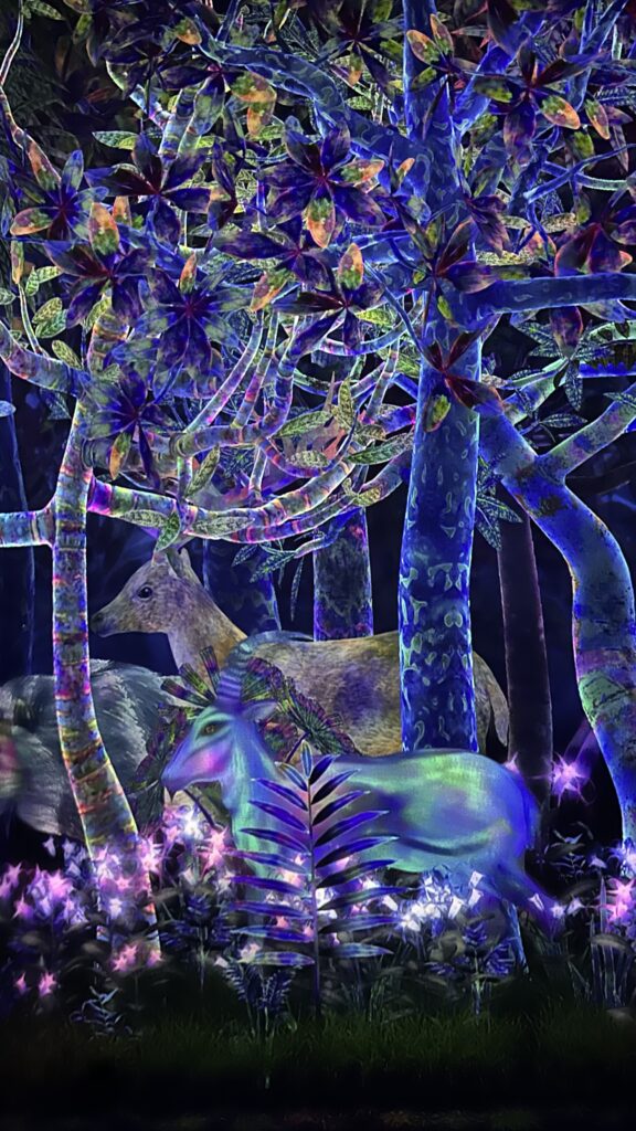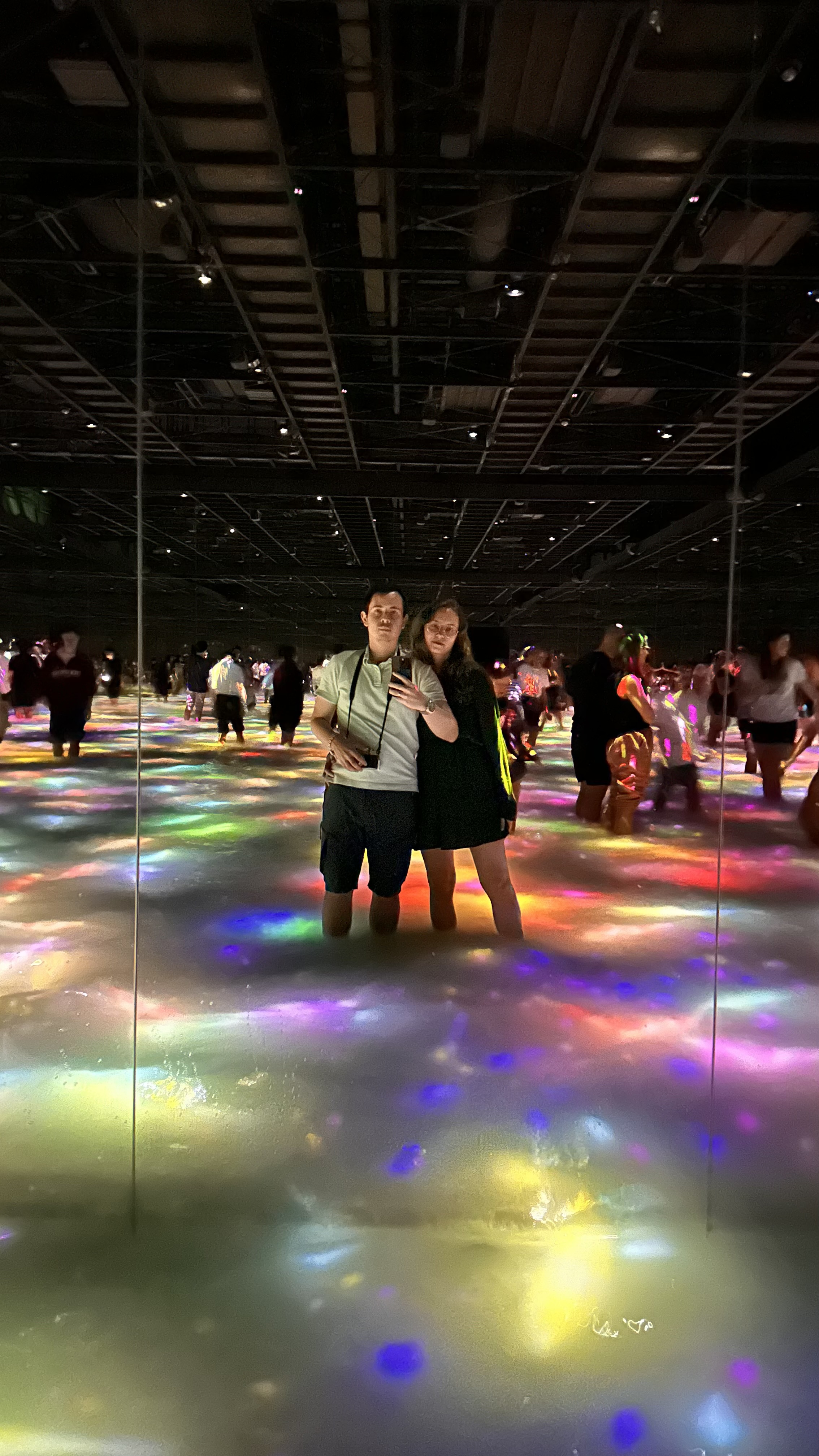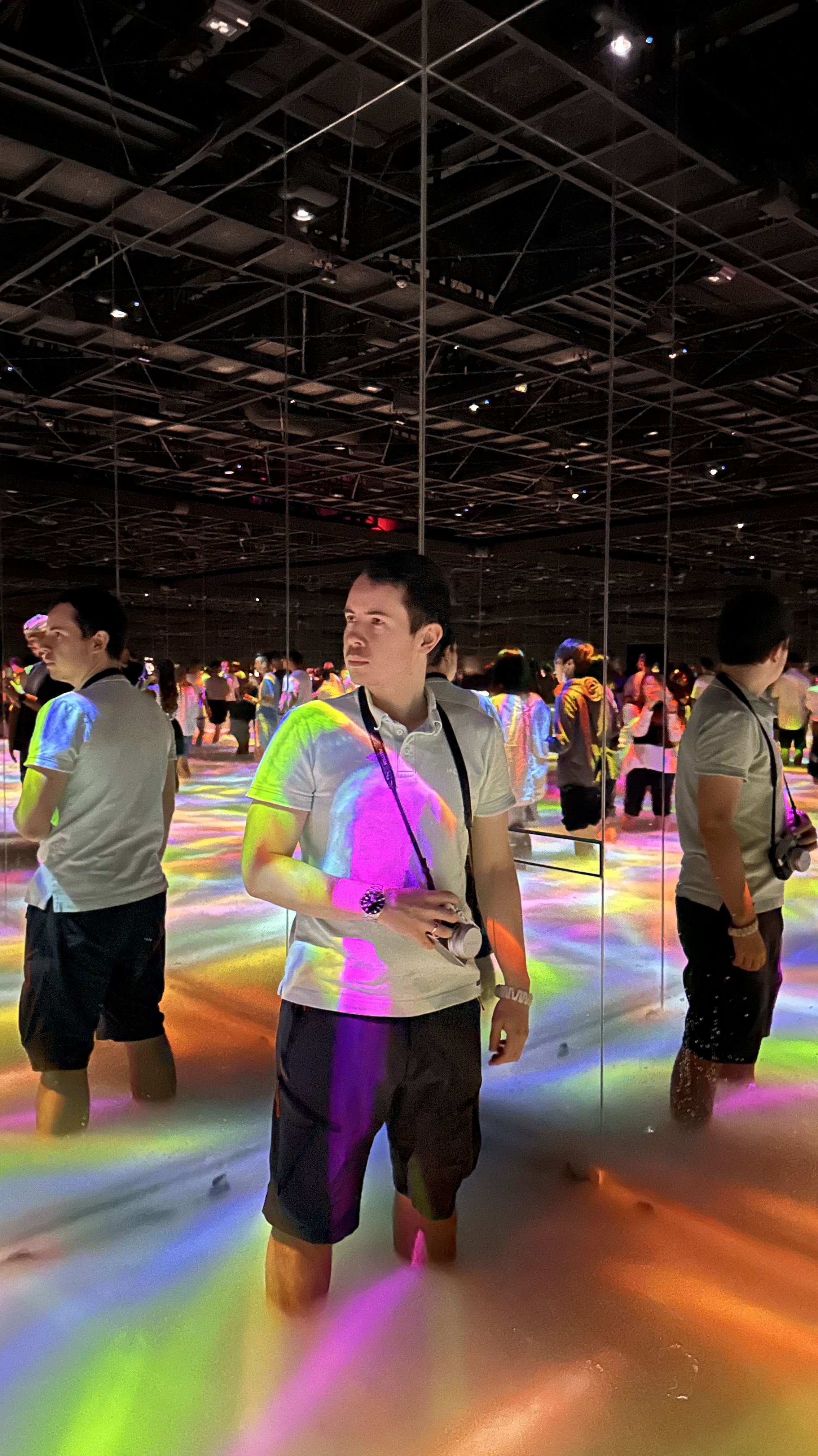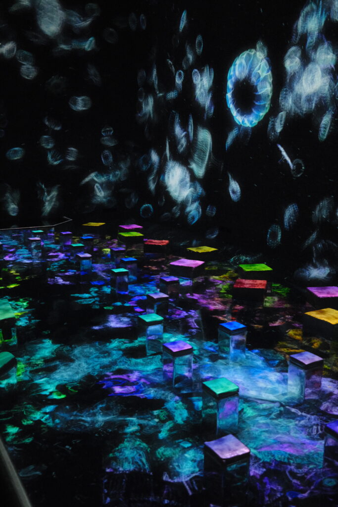 Ganz in der Nähe lag unser Tageshauptprogramm: Das teamLab Planets Tokyo. Ein interaktives Kunstmuseum mit Fokus auf Wahrnehmung durch alle Sinne. Oder besser ausgedrückt: Ein Eldorado für Instagram- und Social-Media Bilder 😀 Tatsächlich aber auch ein tolles Erlebnismuseum für Eltern mit ihren Kindern. Ob durch kniehohe Wasserareale mit Koi-Projektionen, durch leuchtende Spiegelsäle, lebende Orchideen-Wände oder illuminierte Wälder. Hier gab es für uns so einige Fotos und Videos zu machen.