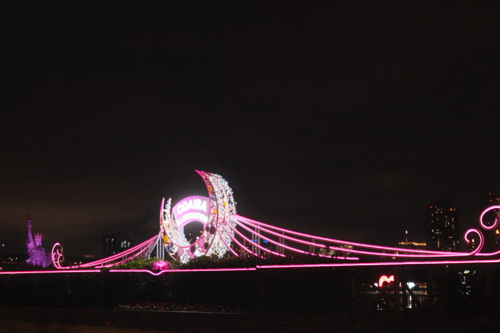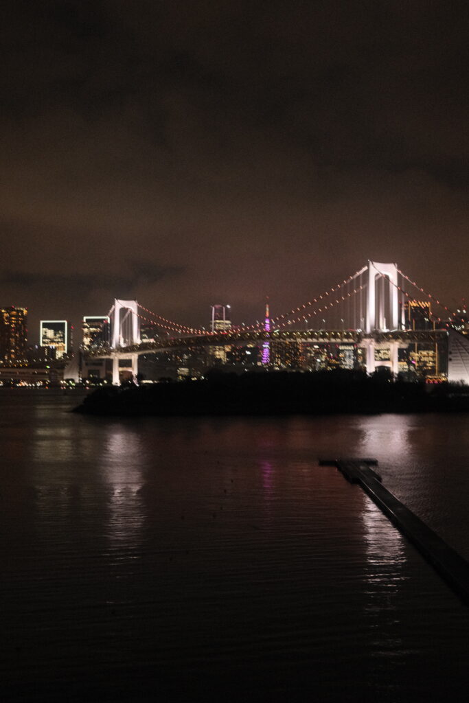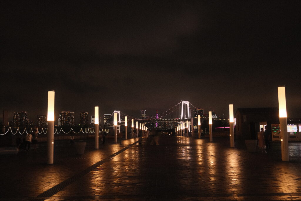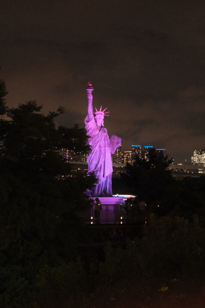 Nach fast einer Stunde Fahrt mit den Öffis sind wir am Telekom Center in Odaiba angekommen und von da aus die Promenadenwege entlang flaniert. Hier zeigte sich uns ein wunderbarer Blick auf die Rainbow-Bridge (anfangs noch unbeleuchtet im Hellen), auf die japanische Freiheitsstatue oder die Unicorn-Gundam Skulptur.