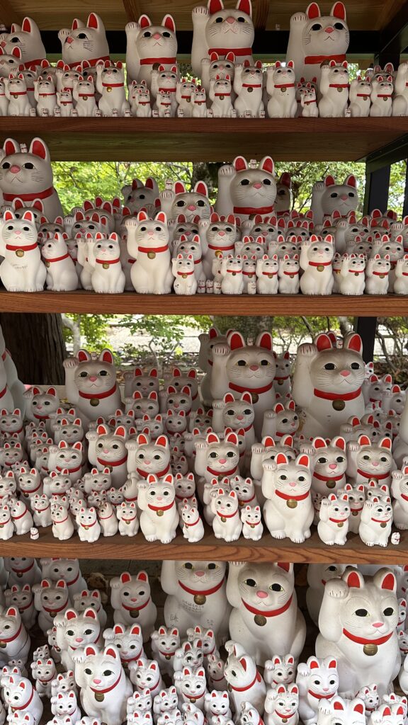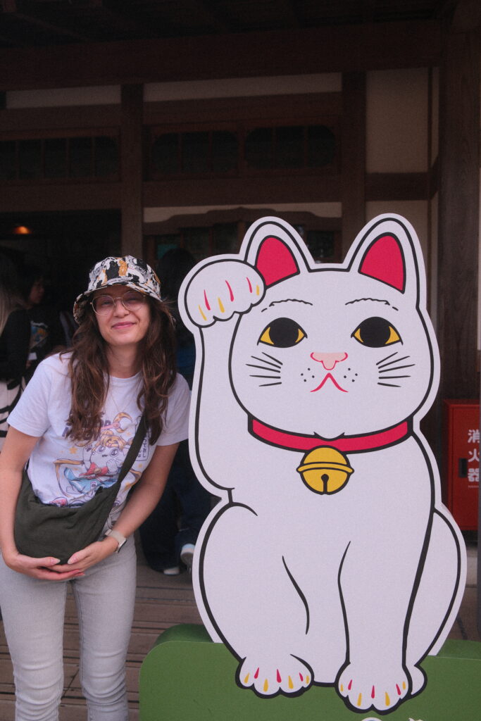 Aber wer will schon früh dort ankommen? Also haben wir ein weiteres Mal unsere Koffer in Schließfächer gepackt und haben einen letzten Tag in Japans Metropole verbracht. Tagesziel heute: Der Gōtokuji Tempel oder besser bekannt als der Winkekatzentempel. Mit neuer Katzenmütze und einem Sailor Miau T-Shirt ausgestattet ging es also diesen letzten Bucket-Listen Punkt von Alona abzuhaken. Vor Ort war die Winkekatzen-Nachfrage so hoch, dass sehr viele der vierpfotigen Mitbringsel bereits ausverkauft waren und man den Verkauf auf eine Katze pro Person limitiert hat. Trotzdem war der Anblick des Tempels mit hunderten kleiner und großer Winkekatzen definitiv den Abstecher nach Setagaya wert.