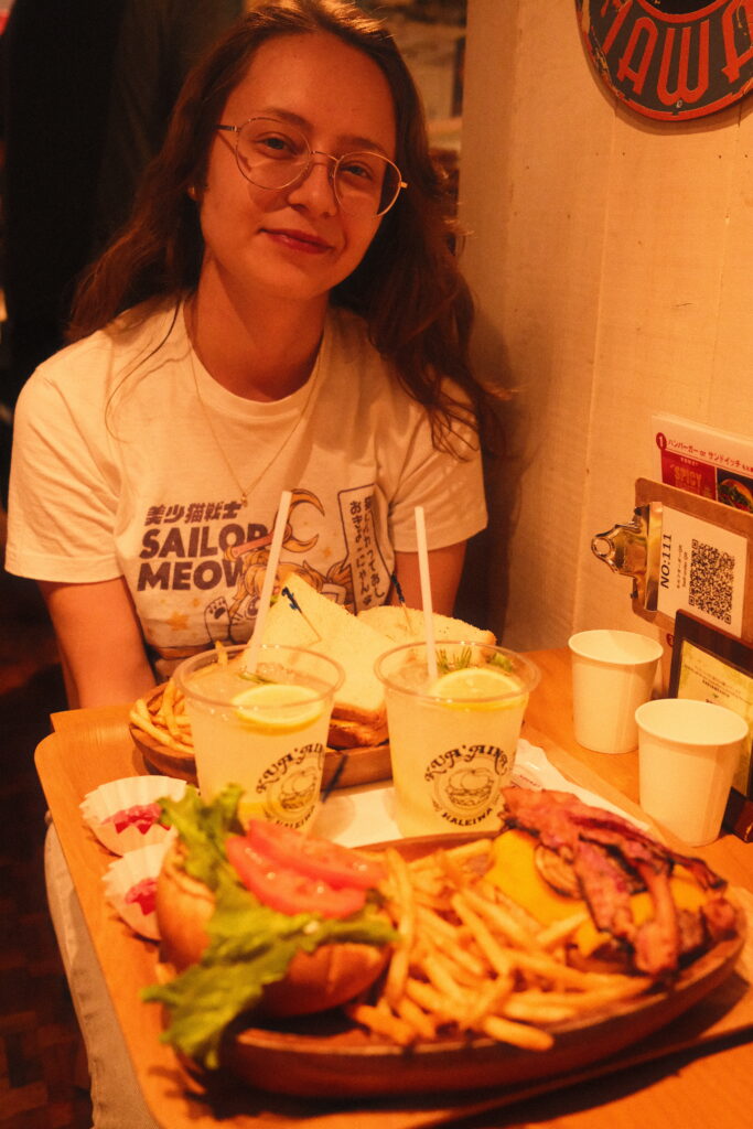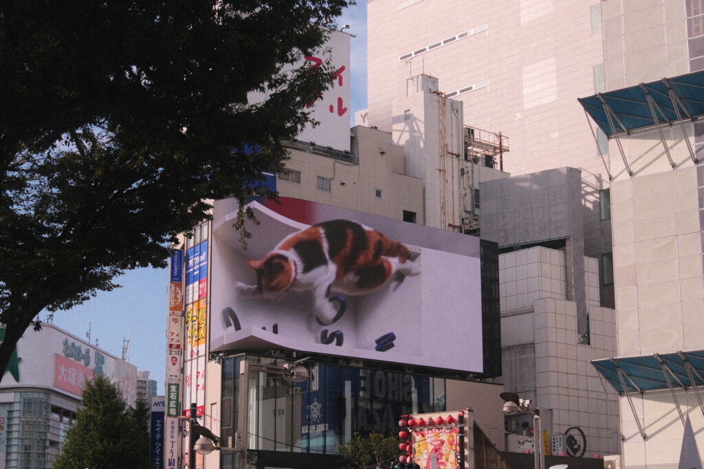 Als weiteren Stop des Tages wollten wir noch einmal dahin zurückkehren, wo diese ganze Reise angefangen hatte – also auf zum Bahnhof Shinjuku und ein bisschen durch das Lumina Est Einkaufscenter spazieren. Ein bisschen shoppen hier, ein bisschen Burger mit Pommes da und schon war der Nachmittag angebrochen. Ein letztes Mal zur 3D-Katze vor dem Bahnhof gelaufen und dann den Zugweg zu unseren Koffern angetreten.