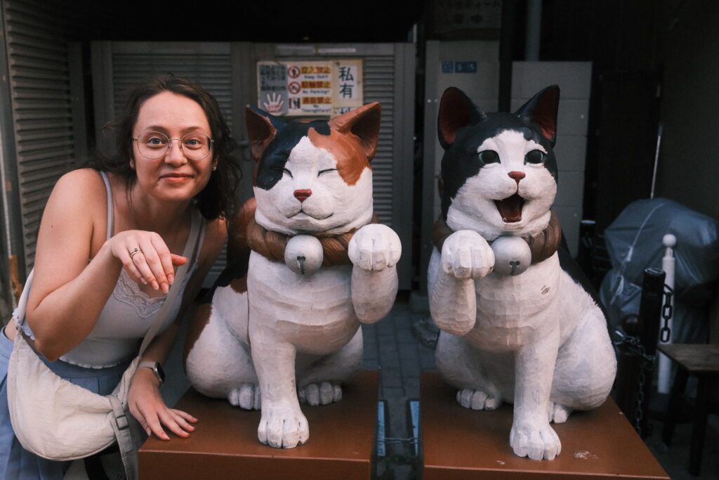 Im Anschluss ging es zu den Sunset Stairs (Yanaka Ginza), da es dort neben einem schönen Ort zur Sonnenuntergangsbetrachtung auch einige Katzen geben sollte. Die Sonne war da, nur leider neben ein paar Katzenfiguren keine Echten. Am Ende der Treppen gab es dann eine kleine Stärkung in einem sehr authentischen Restaurant. An unserer Verständigung müssen wir aber noch etwas arbeiten, denn auf die Frage nach Sushi bekam Alona ein „Haben wir leider nicht mehr, es ist nur noch Thunfisch da“ – egal, so gab es wieder leckeres Ramen.