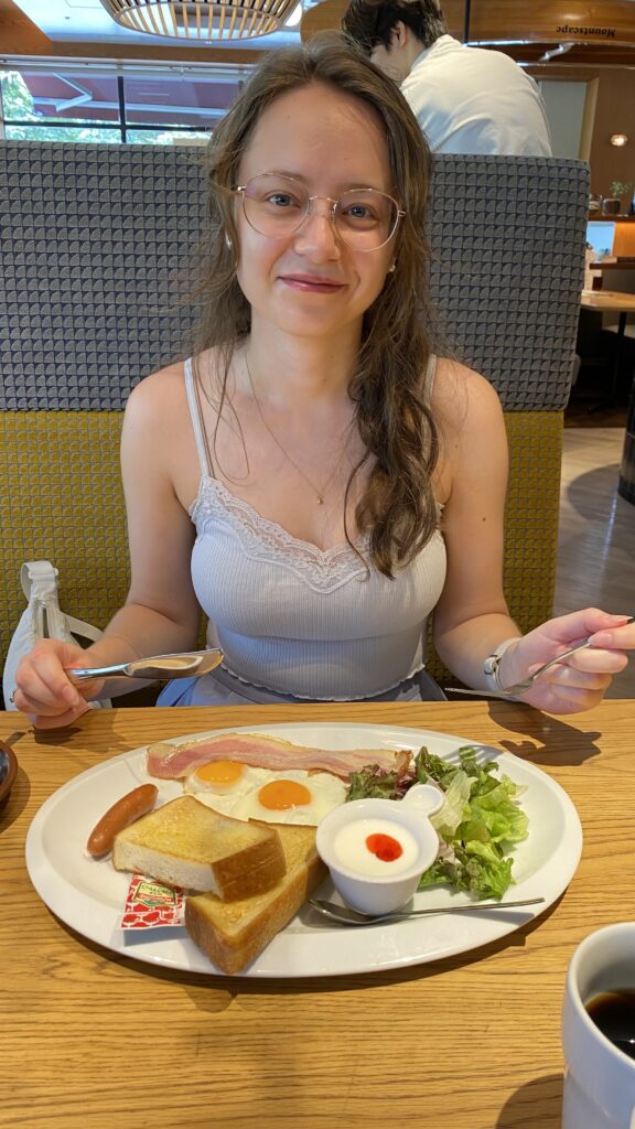 Heute stand eines der Highlights unseres Tokio Aufenthalts auf dem Plan: Der Besuch im Studio Ghibli-Museum – um diese Tickets zu erhalten, sind wir extra vor vier Wochen in der Nacht aufgestanden und haben uns mit mehreren Geräten in die Warteschlange gehangen. Mit Erfolg! Doch zuvor haben wir einen Abstecher zu einem Frühstückslokal am Rande vom Zentralpark Shinjuku gemacht, um die richtige Stärkung für den Tag zu erhalten. Dort genossen wir unter anderem die fluffigsten Pancakes, die wir bisher gegessen haben.