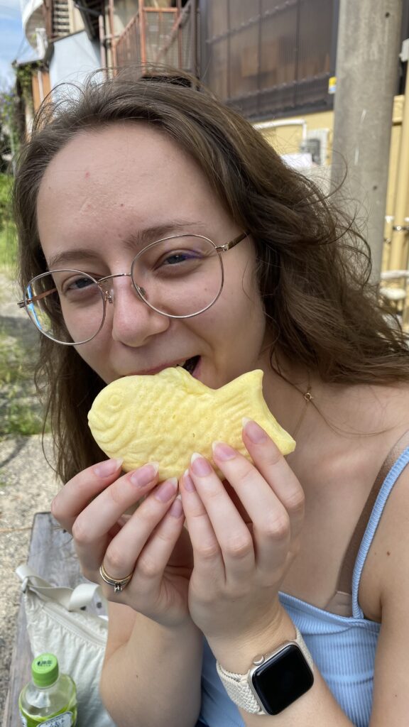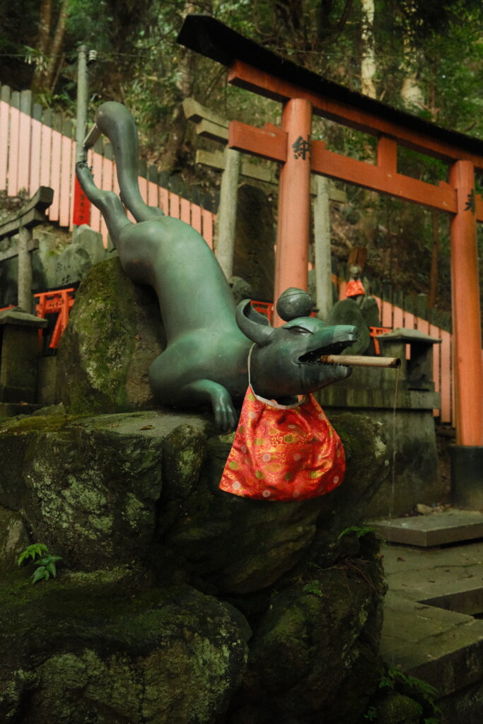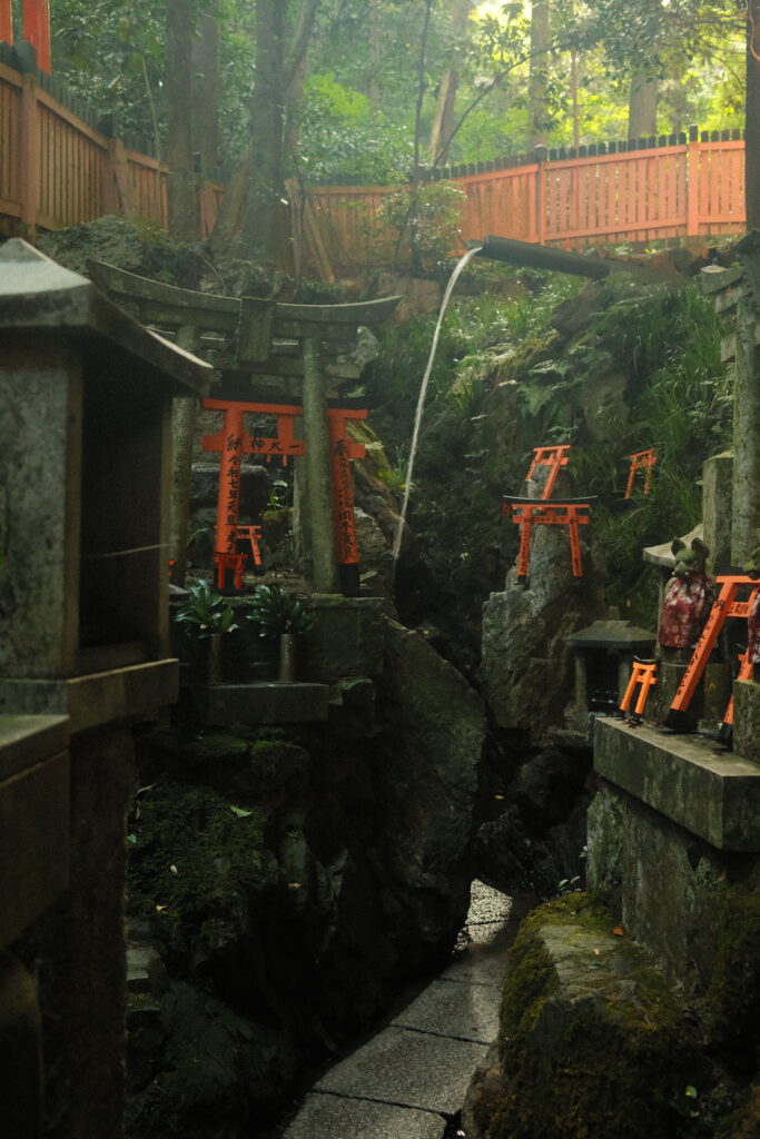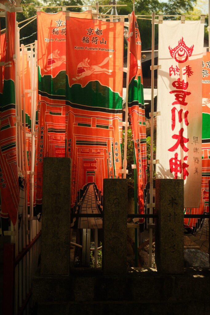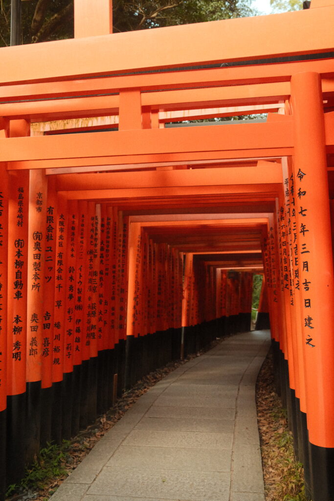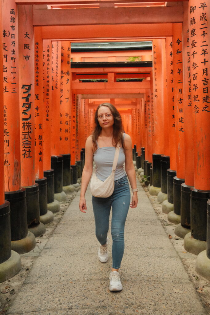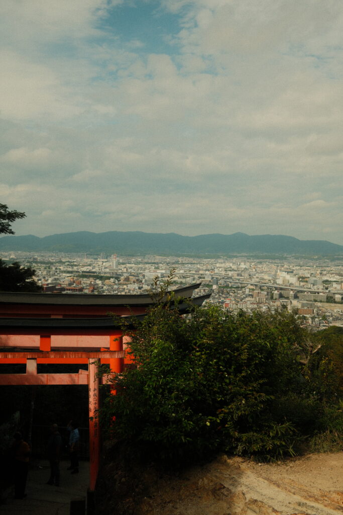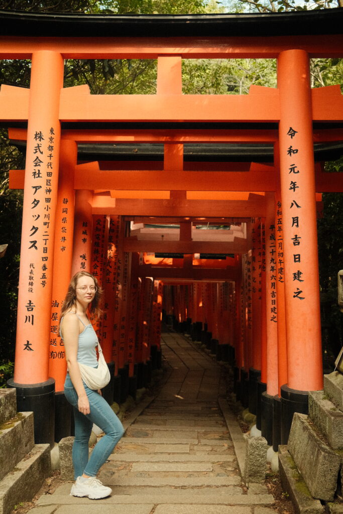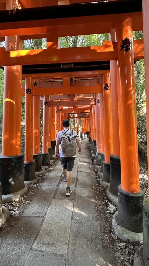 Heute haben wir mal wirklich geschafft, früh aufzustehen, um direkt einen Touri-Hotspot in Kyoto vor dem großen Andrang zu besuchen. So ging es schon um 7:30 Uhr los zur Fushimi Inari Tempelanlage mit den berühmten tausend Toren. Und tatsächlich waren die Anzahl der Touristen um kurz nach Acht noch überschaubar. Der Weg durch die Tore zum Gipfel des Berges war bei der tropischen Hitze länger und anstrengender als gedacht, aber wir genossen den Weg durch die wirklich unzähligen Tore. Wir hätten nicht gedacht, dass wir so früh am Morgen schon knapp 65 Stockwerke an Treppen erklimmen würden.