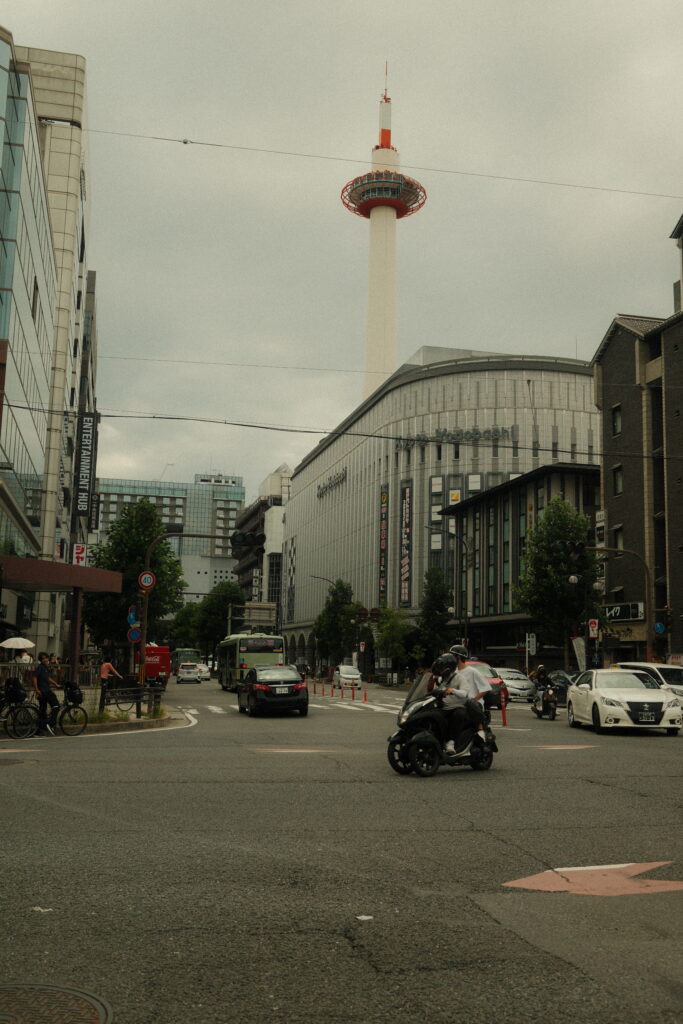 Auf unserem Weg bergab kamen uns immer mehr Touris entgegen. Hier in Kyoto tummeln sich Massen an Touristen, sodass es uns deutlich voller als in Tokyo vorkommt. Dafür findet man an jeder Ecke einen schönen Tempel oder alten Schrein. Nach einem kleinen Frühstück aus dem 7 Eleven holten wir uns unseren ersten Stempel in Kyoto am Fushimi Inari Bahnhof ab und fuhren dann zum Kyoto Hauptbahnhof, da uns dort auch noch der Stempel fehlte. Den Stempel dort haben wir leider trotz Anleitung nicht gefunden – vielleicht dann morgen 😀 Da wir aber schon mal dort waren, besuchten wir noch den Kyoto Tower und das darin liegende Touristeninformationszentrum. Warum, könnt ihr euch vielleicht vorstellen: Da gibt es immer einen Stempel 🙂 Danach genossen wir die Aussicht über Kyoto. Durch die Ferngläser hatte man erstaunlicherweise eine super gute und scharfe Sicht.