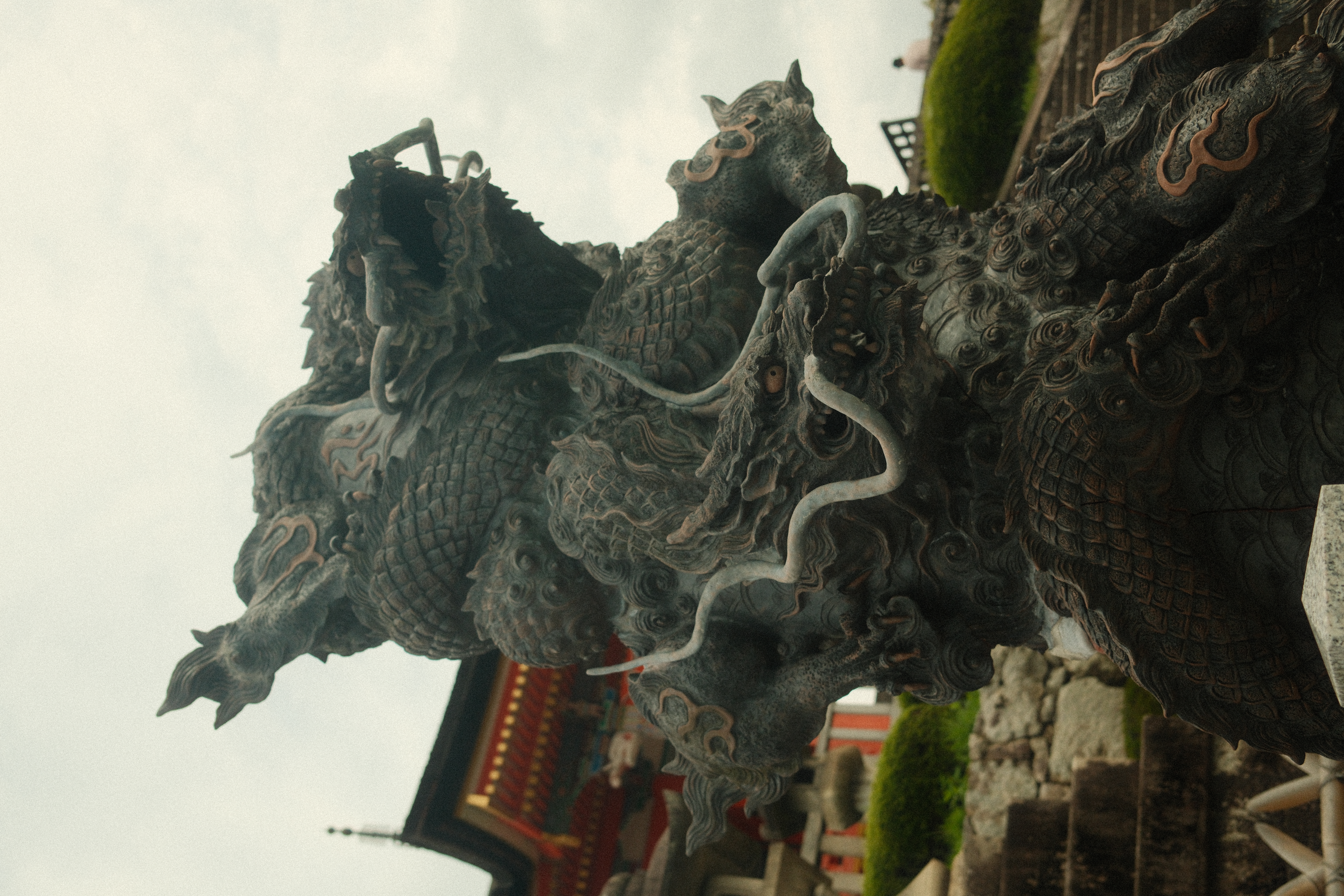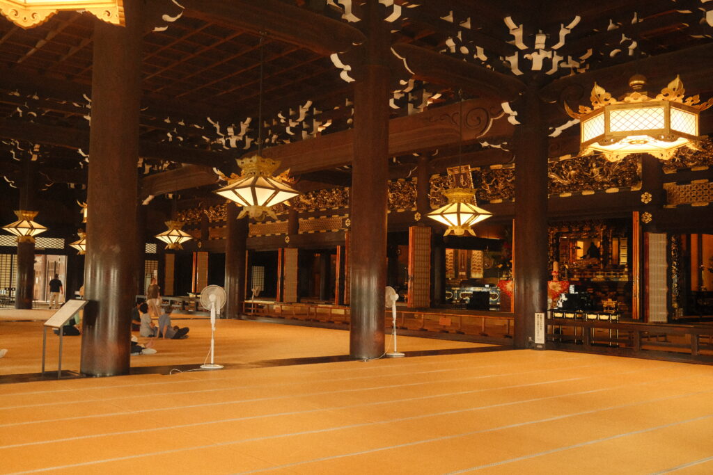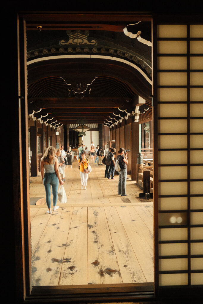 Von oben haben wir eine buddhistische Tempelanlage direkt nebenan entdeckt, die gar nicht überlaufen schien. Somit war diese unser nächstes Ziel. Die Tempelanlage haben wir komplett auf Socken erkundet, was sehr angenehm war. Die 76 Meter lange Haupthalle zählt wohl zu den weltweit größten Holzgebäuden. Auch ein Seil aus Menschenhaaren konnten wir betrachten.