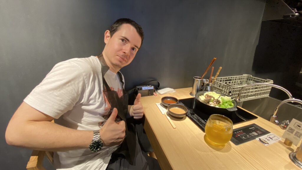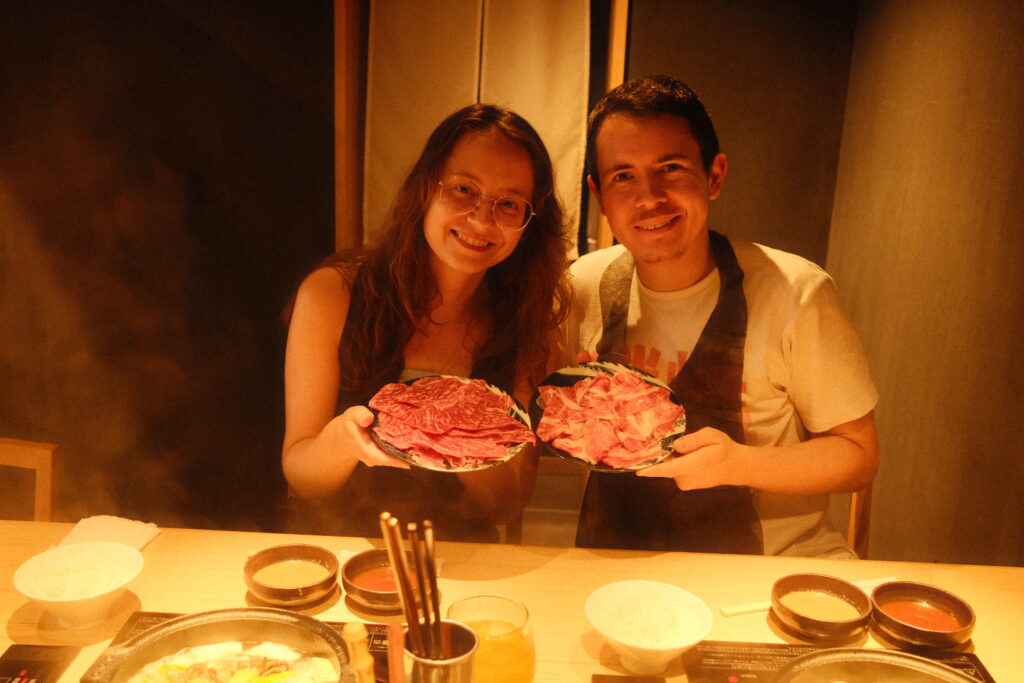 Da der Hunger langsam größer wurde, entfernten wir uns von den Menschenmassen und suchten uns ein top-bewertetes Restaurant abseits der Touri-Gebiete. Und es hat sich gelohnt. Wir genossen Shabu-Shabu – ein japanisches Feuertopfgericht, eine Art Brühfondue – mit Wagyu- und Kobe-Rind. Es war einfach super lecker!
