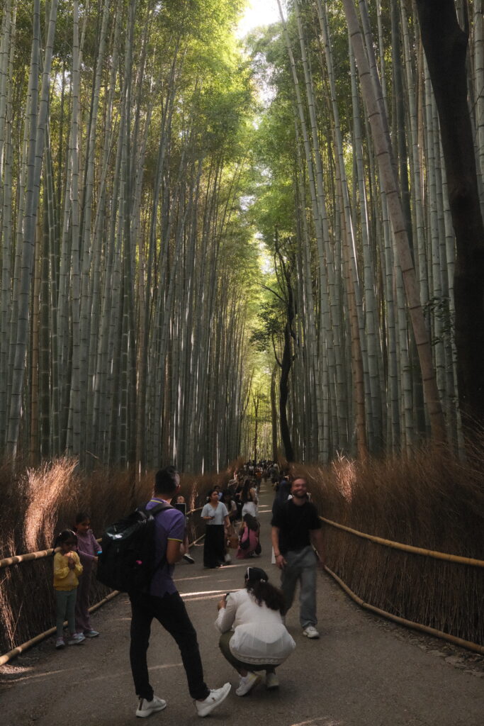 Nachdem wir schon das meiste von Kyoto gesehen haben, beschlossen wir kurzerhand, unseren Trip nach Nara auf heute zu verschieben (ursprünglich wollten wir von Osaka dorthin). Vorher wollten wir aber noch einen Blick in den berühmten Bambuswald erhaschen. So fuhren wir morgens früh mit der Bimmelbahn in das Viertel Arashiyama und entdeckten dort eher ein kleines Bambus-Wäldchen als einen großen Wald.