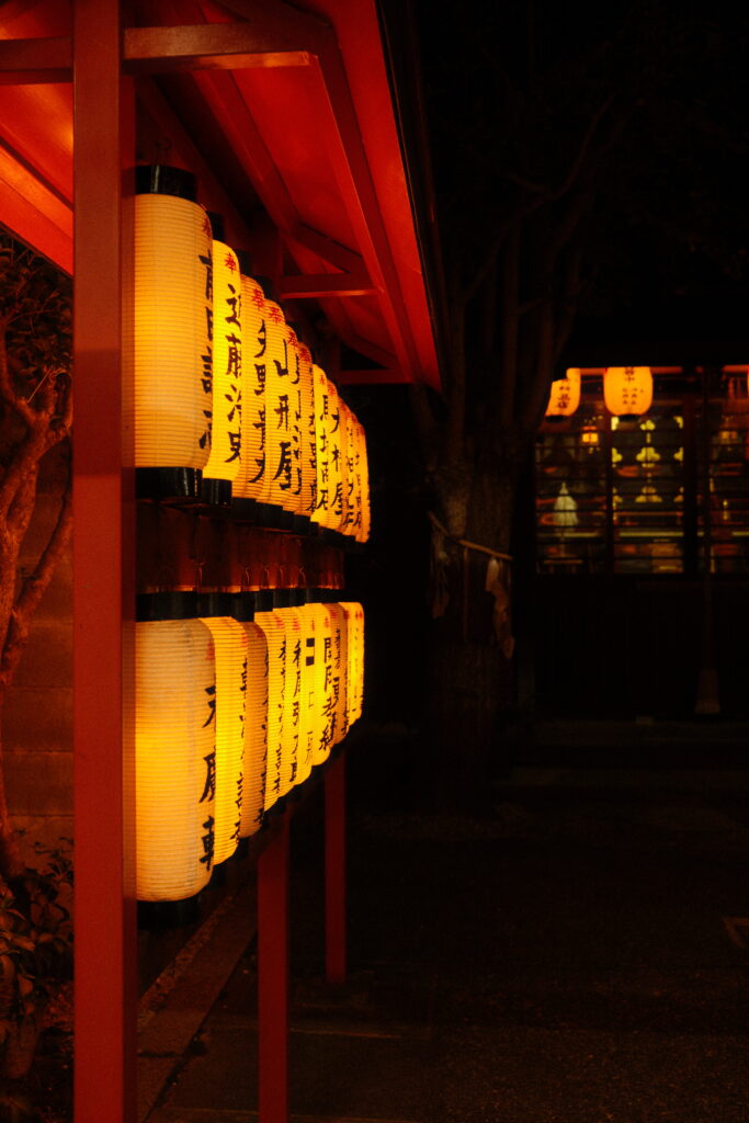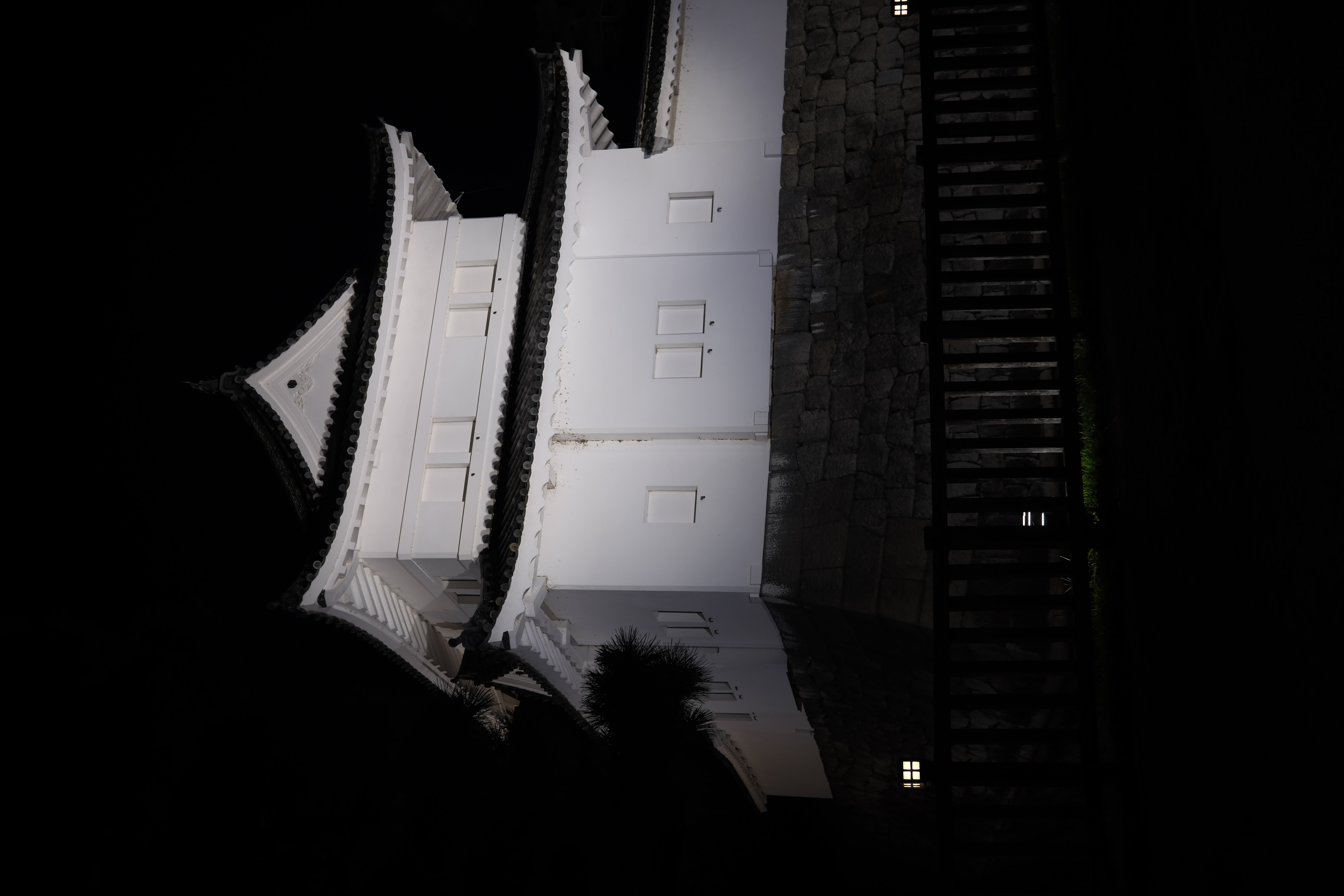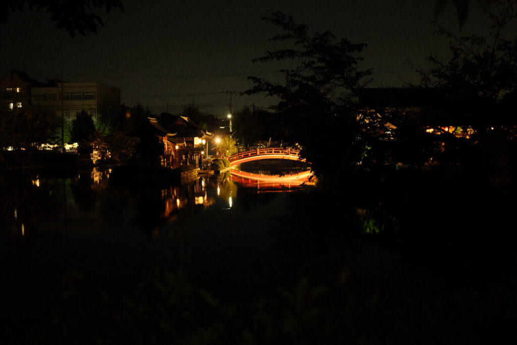 Und damit ging es zurück mit der Bahn nach Kyoto, wie gewohnt auf die Minute pünktlich. Zum Tagesabschluss dann noch einen Spaziergang durch das im dunklen liegende Herz der Stadt, bis wir uns vor der Burg Nijo wiedergefunden haben. Leider war die Mauer zu hoch, um darüber zu schauen – war damals bestimmt nur ein Konstruktionsfehler. Und damit noch ein letztes Mal durch Kyoto flaniert, denn morgen geht’s zur nächsten Station unserer Reise.